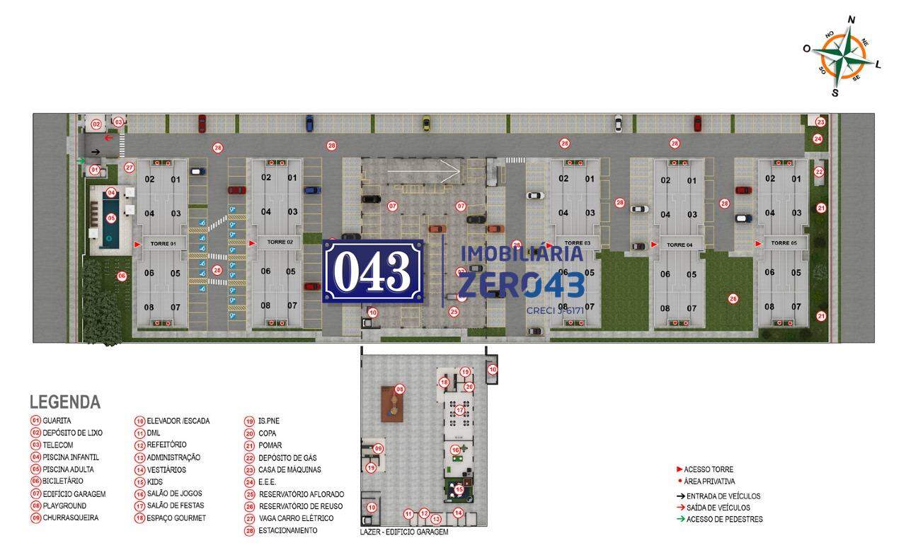Área de lazer: Salão de Festas, Playground, Salão de Jogos, Espaço Gourmet, Piscinas Adulto e Infantil, Espaço Kids, Churrasqueira, Pomar, Bicicletário.