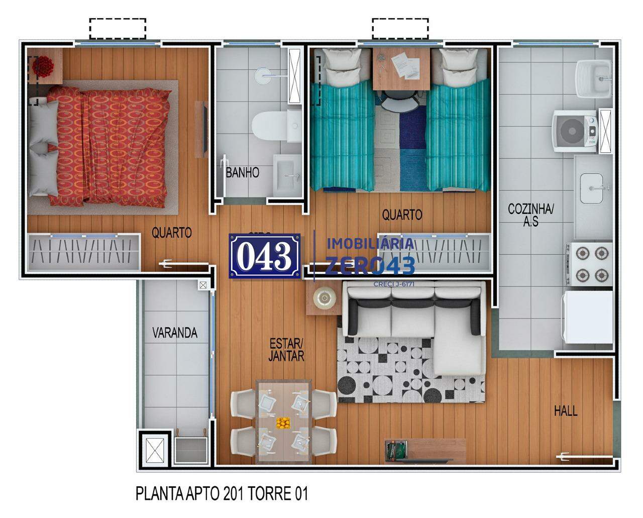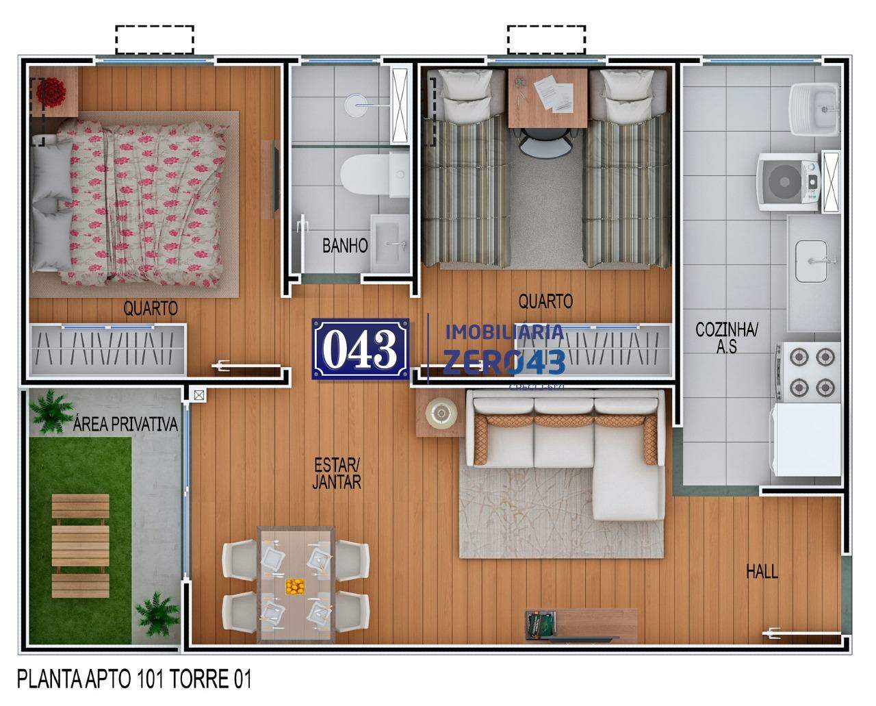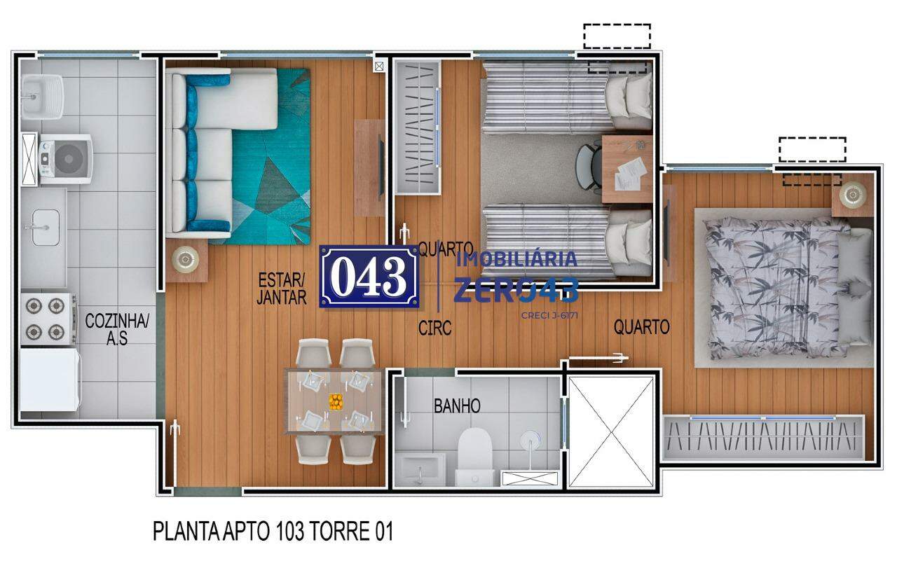 2 Dormitórios (PCD) Área total: 43,6m²*