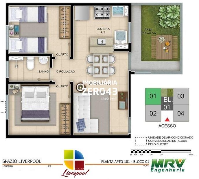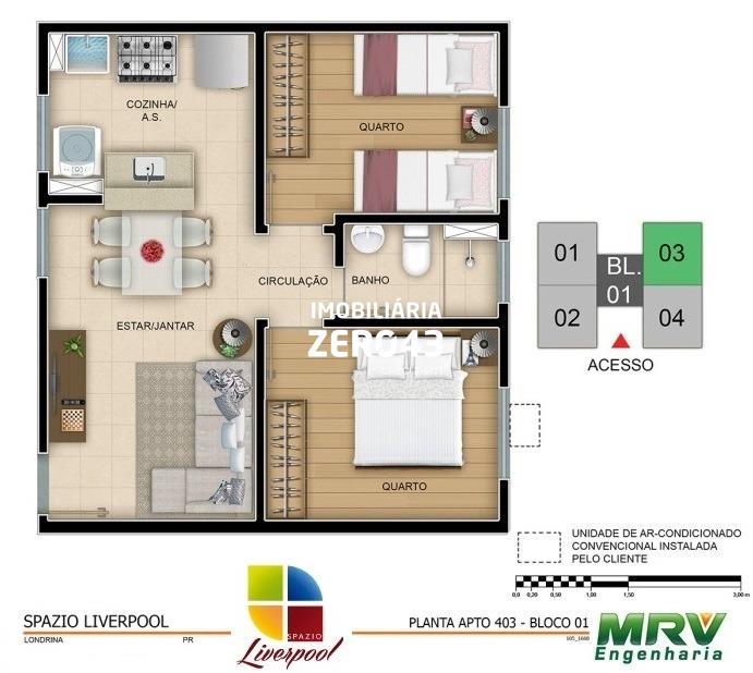 06 aptos de 02 dorms. (PNE) área tota: 45,25 ou 45,26 *