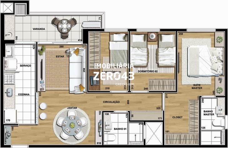 3 dormitórios (1 suíte)
