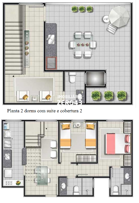 Coberturas de 2 Dormitórios com Suite