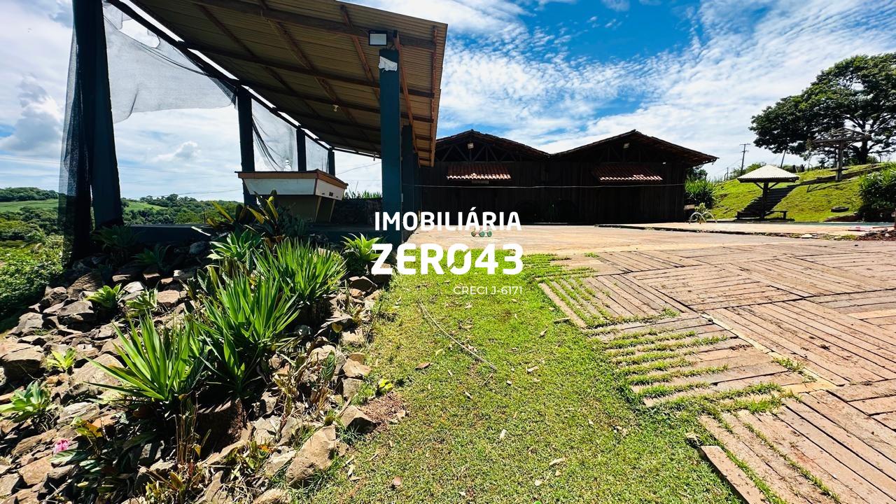 Barracão com amplo salão, cozinha, banheiros e despensa.
