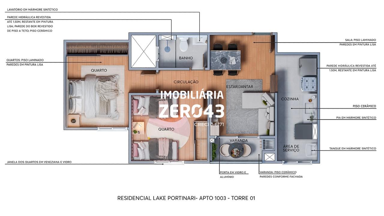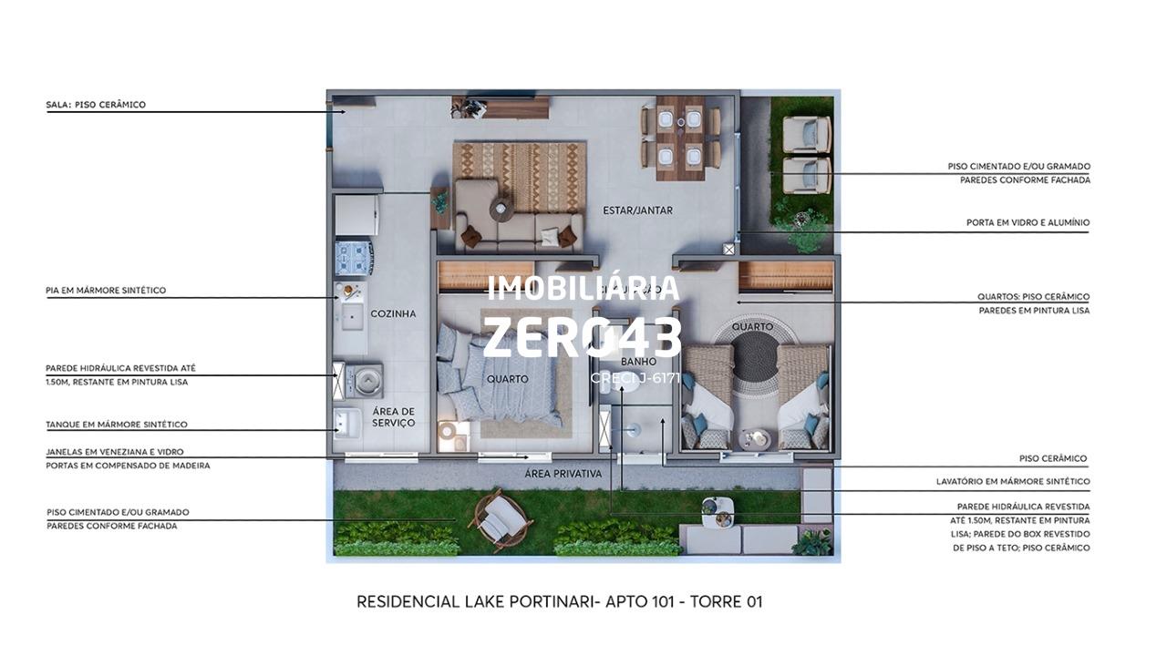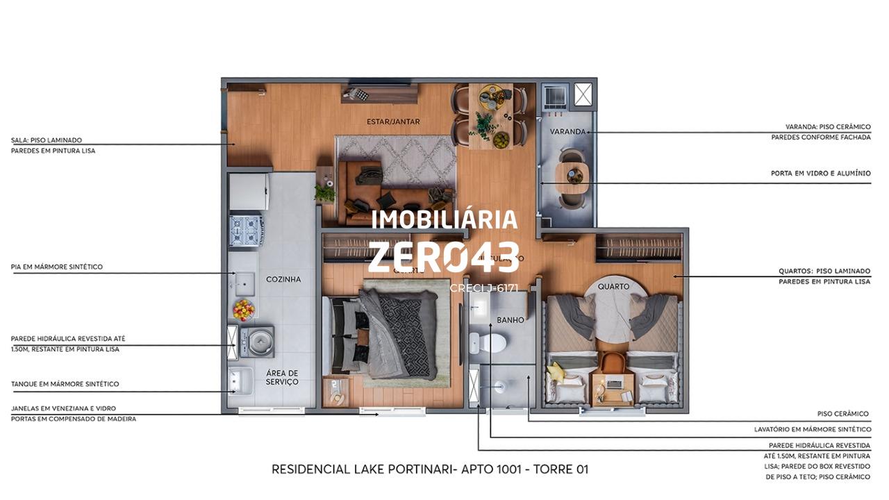 Disponível para venda, com 47 m2 de área útil no residencial Lake Portinari, atualmente habitado, localizado nao Aquaville em Londrina, final da Av. dos Pioneiros, em frente ao Parque Taua, ao lado da UTFPR - região Leste de Londrina/PR.