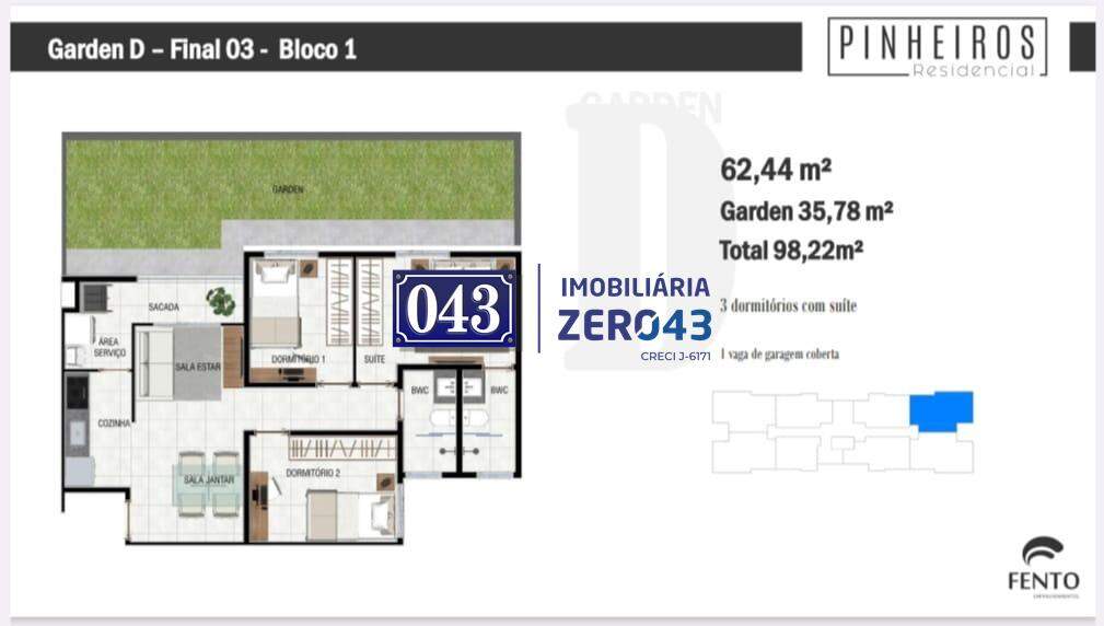 Apartamento Garden, localizado no Jardim Pinheiros, Zona Oeste de Londrina.