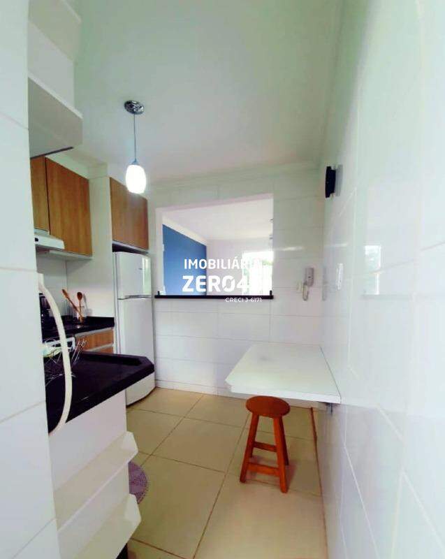 Condomínio com portão eletrônico, playground, churrasqueira, quadra poliesportiva, pomar, salão de festas, portaria 24h e garagem coberta.