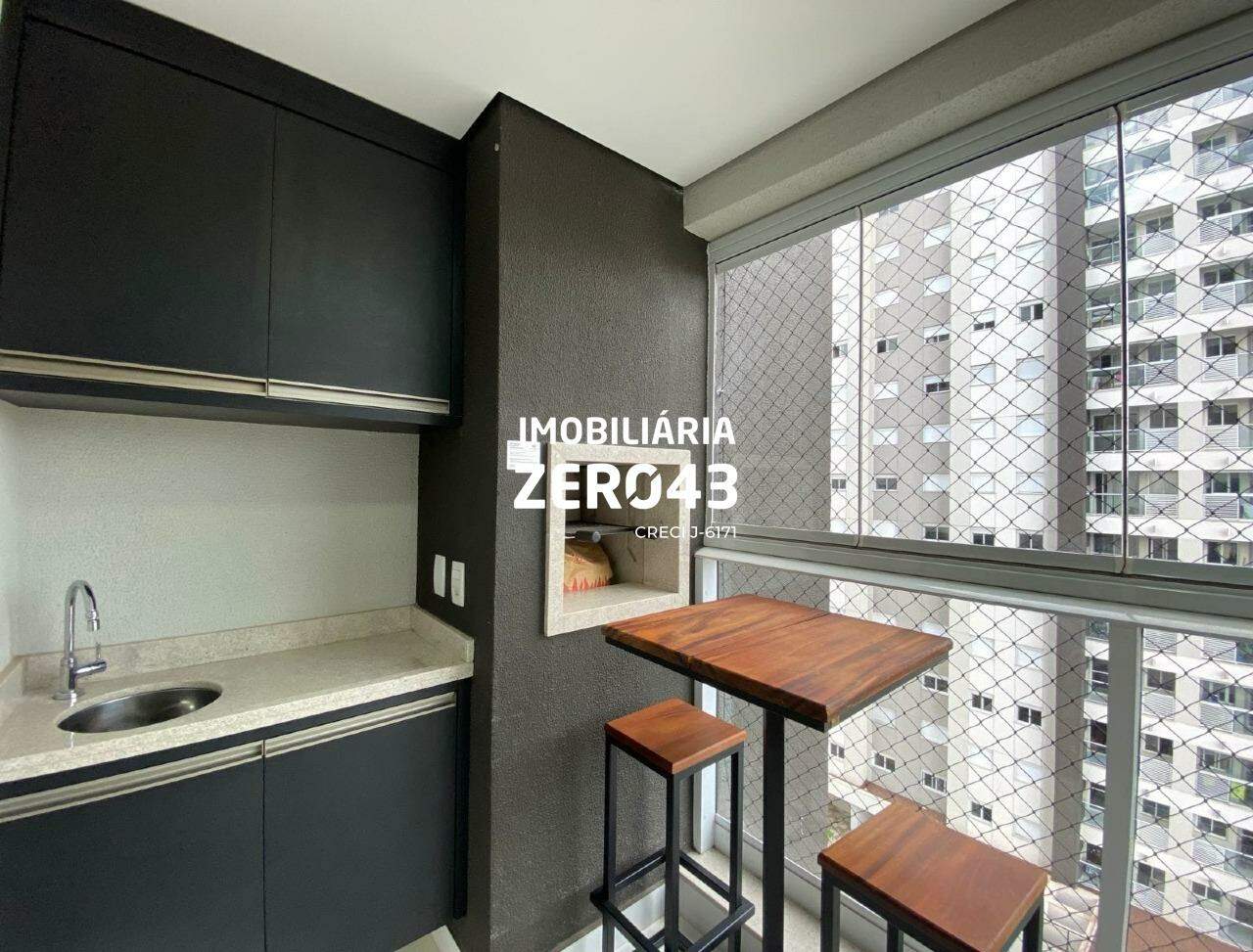 - Varanda com churrasqueira, armários e fechamento em vidro (skin glass).
